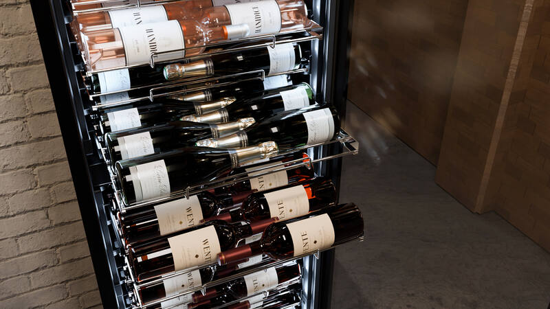 Det professionelle PRO110N vinkøleskab er udviklet til at imødekomme kravene i pro-miljøer. Med plads til op til 107 flasker forener det robusthed, praktisk anvendelse og æstetik – og sikrer samtidig optimale opbevaringsforhold. Takket være udtrækbare, multifunktionelle hylder tilpasser skabet sig forskellige flaskeformater, inklusive champagne, for fleksibel og professionel vinopbevaring.