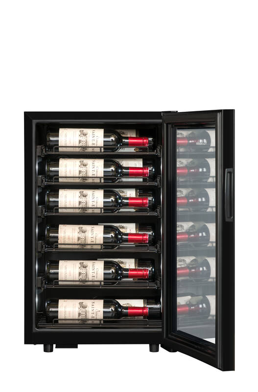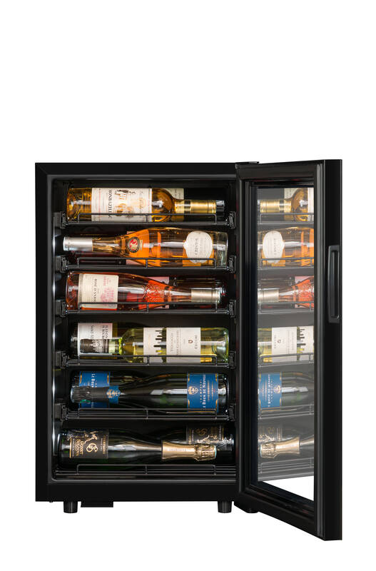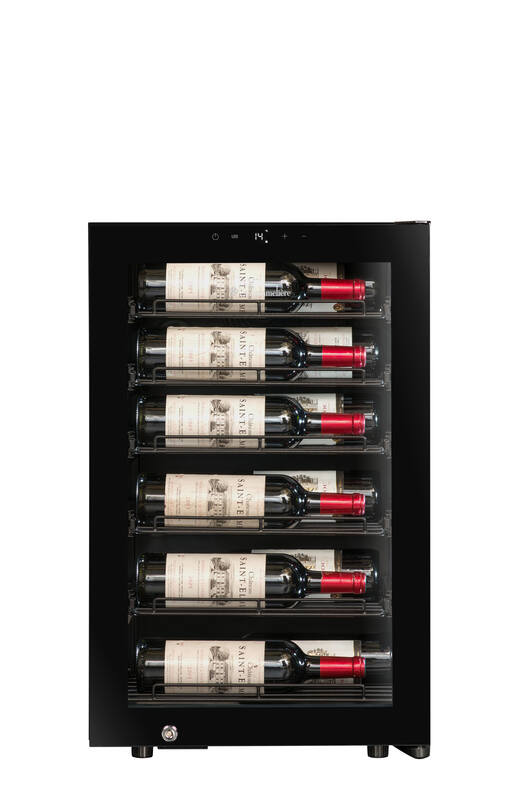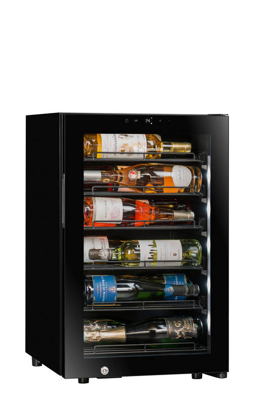 Dette kompakte og elegante COLLECTION vinkøleskab har plads til op til 22 flasker vin og er udstyret med 5 udtrækkelige trådhylder samt 1 fast trådhylde for praktisk og optimal opbevaring. Den har en glasdør med LED-belysning i siderne, der giver nemt overblik over indholdet, samtidig med at UV-behandlet glas beskytter dine vine.