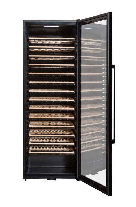 The ECELLAR185G2 features full-height LED side lighting, providing an exceptional showcase for your collection. Its black body and UV-resistant tempered glass door give it a modern, refined look.